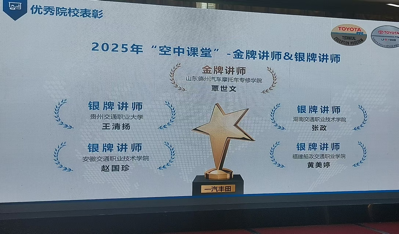 學院教師黃美婷、李鑾一同參與T-TEP&F-SEP年度大會。其中,黃美婷老師憑借其在線上教學領(lǐng)域的突出表現(xiàn)與創(chuàng)新實踐,榮獲2025年一汽豐田“空中課堂”項目銀牌講師稱號。該榮譽是對其教學設(shè)計能力、數(shù)字化教學應(yīng)用水平及教學效果的高度認可,展現(xiàn)了新時代職教教師復(fù)合型的專業(yè)素養(yǎng),在培訓(xùn)交流中展現(xiàn)了我院教師的專業(yè)風采。