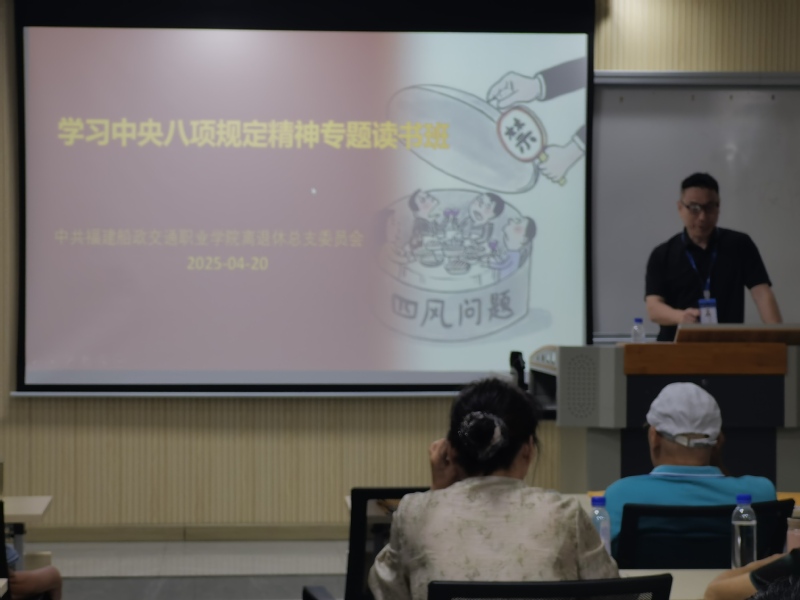 為進(jìn)一步加強(qiáng)離退休干部黨員的思想政治建設(shè),4月20日,福建船政交通職業(yè)學(xué)院離退休黨組織舉辦了專(zhuān)題讀書(shū)班,將學(xué)習(xí)中央八項(xiàng)規(guī)定及其實(shí)施細(xì)則精神作為重要內(nèi)容,組織廣大離退休干部黨員全面系統(tǒng)學(xué)習(xí)了習(xí)近平總書(shū)記關(guān)于加強(qiáng)黨的作風(fēng)建設(shè)的重要論述。