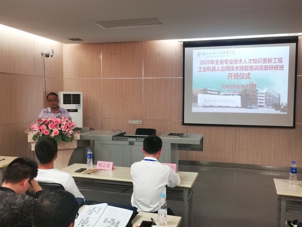 楊開(kāi)懷院長(zhǎng)首先對(duì)參加開(kāi)班儀式的領(lǐng)導(dǎo)和嘉賓表示歡迎,對(duì)給予此次培訓(xùn)技術(shù)支持的福建閩大科技有限公司表示感謝。接著介紹了機(jī)械與智能制造學(xué)院工業(yè)機(jī)器人專業(yè)的歷史沿革,以及工業(yè)機(jī)器人應(yīng)用技術(shù)領(lǐng)域近年來(lái)的發(fā)展前景,我院在工業(yè)機(jī)器人專業(yè)課程優(yōu)化、實(shí)驗(yàn)室建設(shè)、技能競(jìng)賽等方面取得的優(yōu)異成績(jī),并努力致力于為我省乃至全國(guó)的工業(yè)機(jī)器人行業(yè)培養(yǎng)高素質(zhì)技能人才。