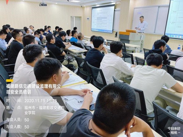 11月19-21日,培訓學院組織開展福建路信交通建設監(jiān)理有限公司職工安全教育培訓。本次培訓為期3天,參加培訓的學員50名。