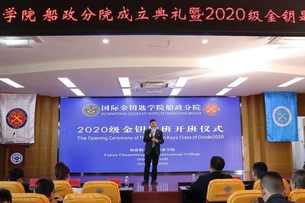 10月24日,國(guó)際金鑰匙學(xué)院船政分院成立典禮暨2020級(jí)金鑰匙班開(kāi)班儀式在福建船政交通職業(yè)學(xué)院北區(qū)學(xué)術(shù)報(bào)告廳隆重舉行。中國(guó)金鑰匙副秘書(shū)長(zhǎng)、國(guó)際金鑰匙學(xué)院(中國(guó)區(qū))運(yùn)營(yíng)中心運(yùn)營(yíng)官?gòu)堄?,福建船政交通職業(yè)學(xué)院副院長(zhǎng)高汝武教授,金鑰匙集團(tuán)代表及學(xué)院師生代表共同出席典禮,典禮由航海學(xué)院副院長(zhǎng)李道科主持。