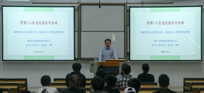 李濤同志是土木工程學院07級市政工程技術專業(yè)畢業(yè)生,同時也是福建省重點項目建設功臣,獲得“福建省五一勞動獎章”、“福州市優(yōu)秀共青團員”等多項榮譽;成立了“福建省勞模工作室”。在參加工作的10年里先后負責過多個省、市級重點項目建設;并參與多個省、市級科研項目及地方/行業(yè)標準編制。李濤同志以過來人的身份向學弟學妹們分享了他的大學時代經(jīng)歷,介紹了個人工作履歷,分享了工作后的部分參建項目案例,再結合上述內容,對學生在校期間生活學習、工作后各方面給予建議,最后與學生進行互動溝通。講座內容豐富深刻又接地氣,他結合自身在學習、工作過程中遇到的問題,然后如何解決展開了很多的案例講解,充分展示了當代青年的卓越風采,展現(xiàn)了勞動者的靚麗身影,以勞模+工匠精神勇當重任,全體教師和學生受益匪淺。