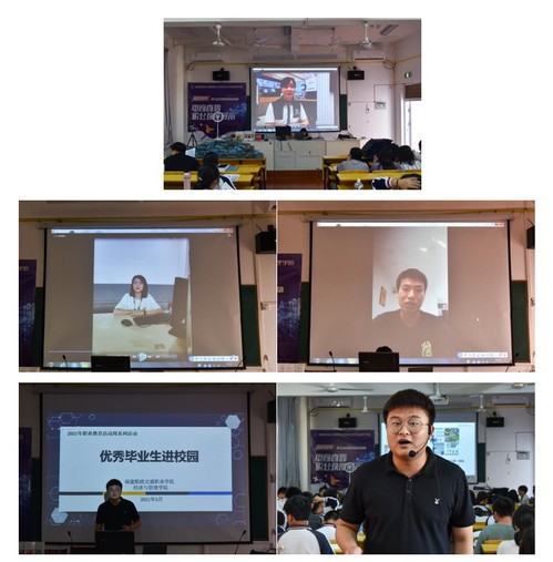 同時(shí),我們還通過現(xiàn)場視頻連線的方式講述了經(jīng)濟(jì)與管理學(xué)院幾位優(yōu)秀校友的成長歷程。并特別邀請到2012級電子商務(wù)專業(yè)的何俊鋒同學(xué)作為船政優(yōu)秀校友代表與在場的同學(xué)們分享了自己求學(xué)及成功創(chuàng)業(yè)的經(jīng)歷,告訴同學(xué)們職業(yè)教育也能成功成才,成就出彩人生,勉勵(lì)同學(xué)們要敢想敢闖敢拼。