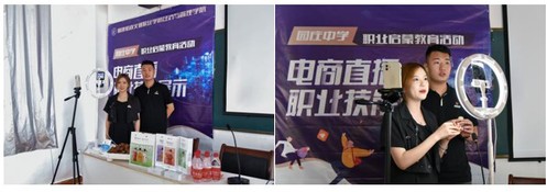 電商直播作為網(wǎng)絡(luò)直播的商業(yè)化應(yīng)用,逐漸成為擴(kuò)大內(nèi)需、助推內(nèi)循環(huán)的新引擎。在本次活動(dòng)中,2019級市場營銷1班許明澤與鄧陳丹兩位學(xué)生通過現(xiàn)場搭建電商直播間進(jìn)行了電商直播職業(yè)技能的展示。在同學(xué)們的眼中直播的設(shè)備與場景是那么得新奇、有趣,在他們的心中埋下的職業(yè)與夢想的種子。通過觀看哥哥姐姐們的直播展示,臺下的同學(xué)們興奮不已,躍躍欲試,爭先恐后地上臺參與到直播體驗(yàn)中。在兩位主播的耐心引導(dǎo)下,參與的同學(xué)們自信地模仿著,直觀地了解職業(yè)教育、認(rèn)識職業(yè)教育、體驗(yàn)職業(yè)教育的精彩,切身感受到職業(yè)教育的魅力。