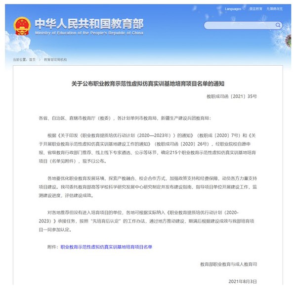 8月3日,教育部公布了職業(yè)教育示范性虛擬仿真實(shí)訓(xùn)基地培育項(xiàng)目名單。根據(jù)《關(guān)于印發(fā)〈職業(yè)教育提質(zhì)培優(yōu)行動(dòng)計(jì)劃(2020—2023年)〉的通知》(教職成〔2020〕7號(hào))和《關(guān)于開展職業(yè)教育示范性虛擬仿真實(shí)訓(xùn)基地建設(shè)工作的通知》(教職成司函〔2020〕26號(hào)),經(jīng)各省推薦、線上線下專家遴選、公示等程序,教育部職業(yè)教育與成人教育司確定職業(yè)教育示范性虛擬仿真實(shí)訓(xùn)基地培育項(xiàng)目215個(gè),其中,安全技術(shù)與管理專業(yè)群“交通安全虛擬仿真實(shí)訓(xùn)基地”項(xiàng)目入選。