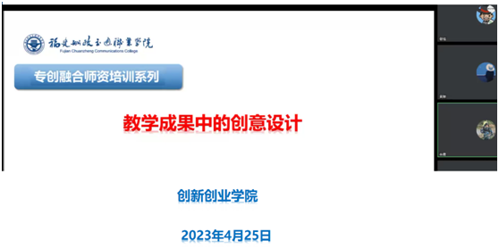 本次培訓采用線上講座的形式,特邀全國知名雙創(chuàng)教育專家謝強老師專題講授創(chuàng)意設計課程的建設方向、建設方法以及教學方法,結合最新的chatGPT技術對課程進行結構搭建和創(chuàng)意引導,為今后我校雙高建設中的專創(chuàng)融合課程建設模塊提供了清晰的思路和方向。參加培訓的教師表示講座內容豐富、思路新穎、案例詳實,為今后專創(chuàng)課程的建設奠定了較為堅實的基礎。