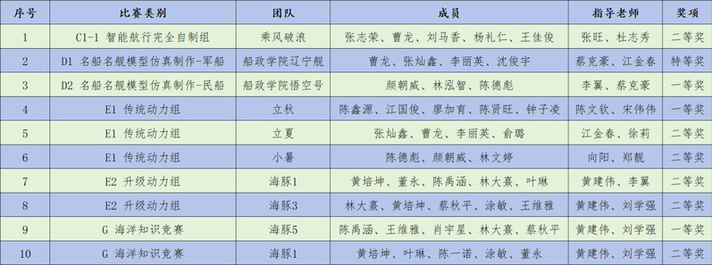 在全國海洋航行器大賽賽場(chǎng)上,吸引著來自北京大學(xué)、上海交通大學(xué)、浙江大學(xué)、哈爾濱工業(yè)大學(xué)等371所院校和科研院所的2785支參賽隊(duì)伍,覆蓋學(xué)生超萬人。大賽圍繞創(chuàng)新創(chuàng)意創(chuàng)業(yè)、設(shè)計(jì)與制作、智慧船舶與海洋工程技術(shù)、名船名艦?zāi)P头抡嬷谱鳌⒋8?jìng)速、帆船模型競(jìng)速、海洋知識(shí)競(jìng)賽七大類比賽項(xiàng)目展開角逐。我校參賽學(xué)生在此次賽事中再創(chuàng)佳績,共獲得特等獎(jiǎng)1項(xiàng)、一等獎(jiǎng)3項(xiàng)、二等獎(jiǎng)6項(xiàng)。