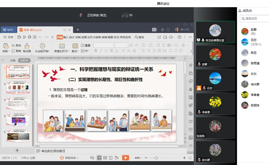 為進(jìn)一步提升教學(xué)質(zhì)量,推進(jìn)思政課課程建設(shè),馬克思主義學(xué)院思想道德與法治教研室于11月9日晚在線上進(jìn)行了本學(xué)期的第5次集體備課。