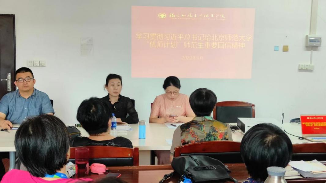 9月21日下午,馬克思主義學(xué)院召開學(xué)習(xí)貫徹習(xí)近平總書記給北師大“優(yōu)師計劃”師范生回信精神座談會,學(xué)習(xí)貫徹習(xí)近平總書記的重要回信精神。馬克思主義學(xué)院全體教職員工參加座談會。