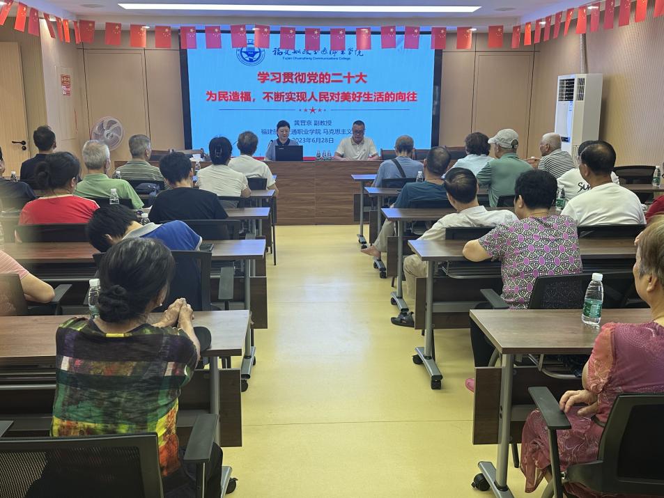 為深入開展學(xué)習(xí)貫徹習(xí)近平新時(shí)代中國(guó)特色社會(huì)主義思想主題教育,推動(dòng)黨的二十大精神深入基層、走進(jìn)社區(qū),讓社區(qū)廣大黨員群眾全面準(zhǔn)確學(xué)習(xí)理解黨的二十大精神,2023年6月27日,馬克思主義學(xué)院宣講團(tuán)成員黃晉京老師應(yīng)金山街道金河社區(qū)邀請(qǐng),為該社區(qū)退休黨員講授題為“學(xué)習(xí)貫徹黨的二十大:為民造福,不斷實(shí)現(xiàn)人民對(duì)美好生活的向往”黨的二十大精神專題黨課。