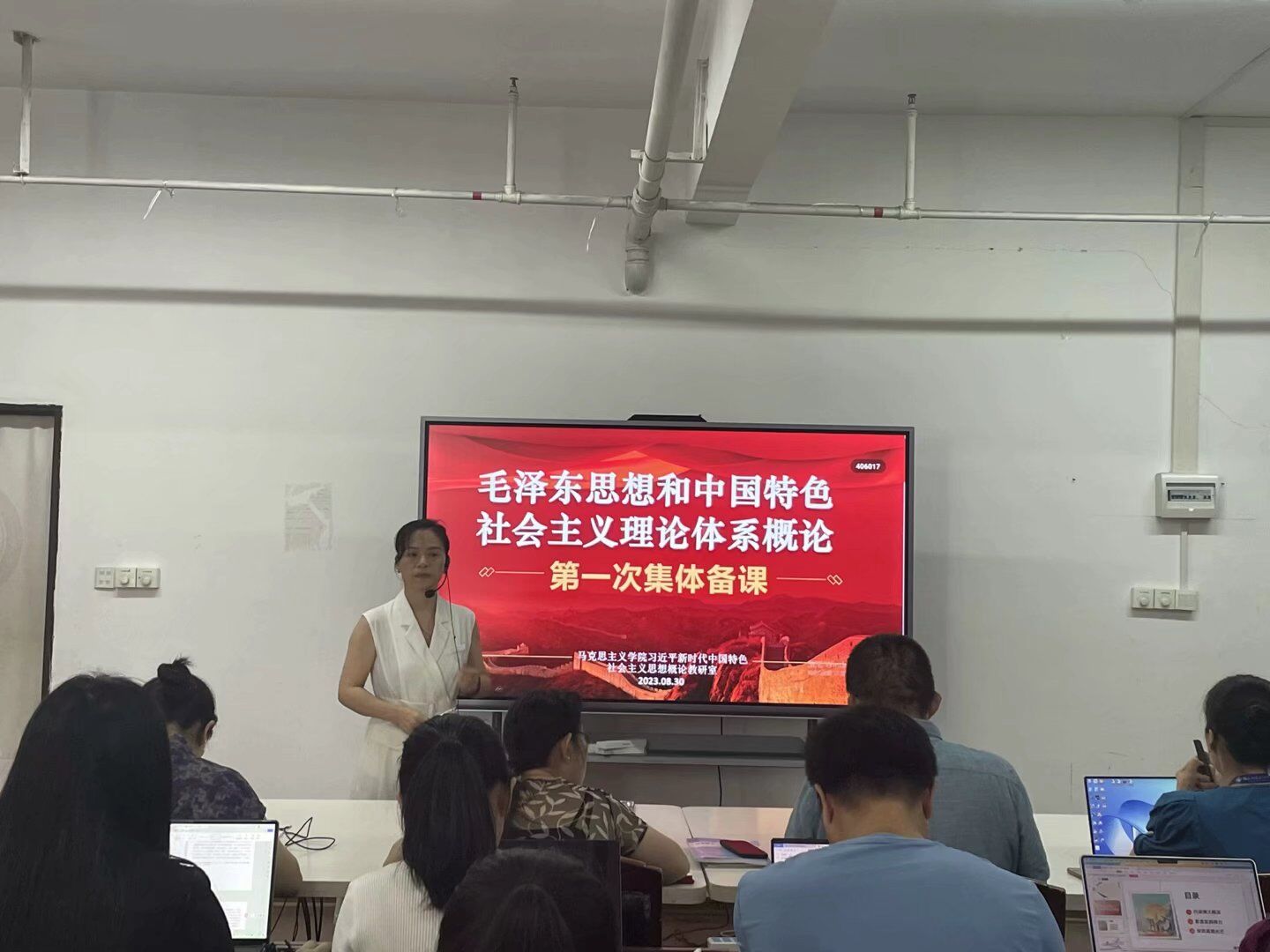 2023年8月30日,馬克思主義學(xué)院“毛澤東思想和中國(guó)特色社會(huì)主義理論體系概論”教研室全體專兼職教師在圖書館11樓1101室開展了“優(yōu)·美”教學(xué)工作坊教研活動(dòng)。本次教研的內(nèi)容是本課程的“導(dǎo)言 馬克思主義中國(guó)化時(shí)代化的歷史進(jìn)程與理論成果”,由江冰老師擔(dān)任主備課人。