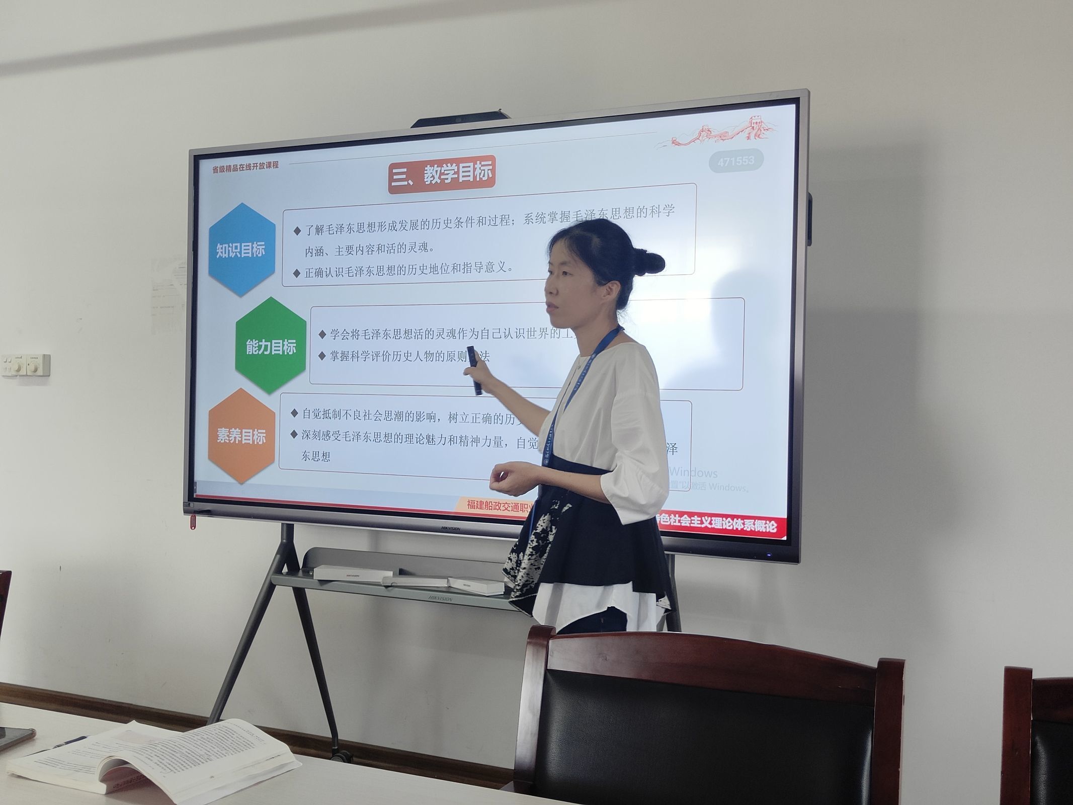 洪凌艷老師圍繞教材、教學(xué)內(nèi)容、學(xué)情、教學(xué)目標(biāo)、教學(xué)重難點(diǎn)、教學(xué)實(shí)施過(guò)程等方面對(duì)第一章的教學(xué)設(shè)計(jì)做了詳細(xì)介紹。她建議針對(duì)高職生基礎(chǔ)知識(shí)較為薄弱的學(xué)情特點(diǎn),以課堂活動(dòng)“走近穿越時(shí)代的偉人---毛澤東”為切入點(diǎn),通過(guò)布置學(xué)生課前資料收集任務(wù),課中分享介紹“我心目中的毛澤東”,梳理毛澤東主要?dú)v史活動(dòng)和功績(jī)引入對(duì)毛澤東思想的學(xué)習(xí)和理解,幫助學(xué)生深刻感受毛澤東思想的理論魅力和精神力量;針對(duì)學(xué)生分析問(wèn)題能力較弱的學(xué)情,注意史論結(jié)合,避免單純講解理論知識(shí)的枯燥,結(jié)合中國(guó)近代歷史、福建紅色文化講活理論、講透理論,幫助學(xué)生掌握科學(xué)評(píng)價(jià)歷史人物的原則方法,樹(shù)立正確的歷史觀。