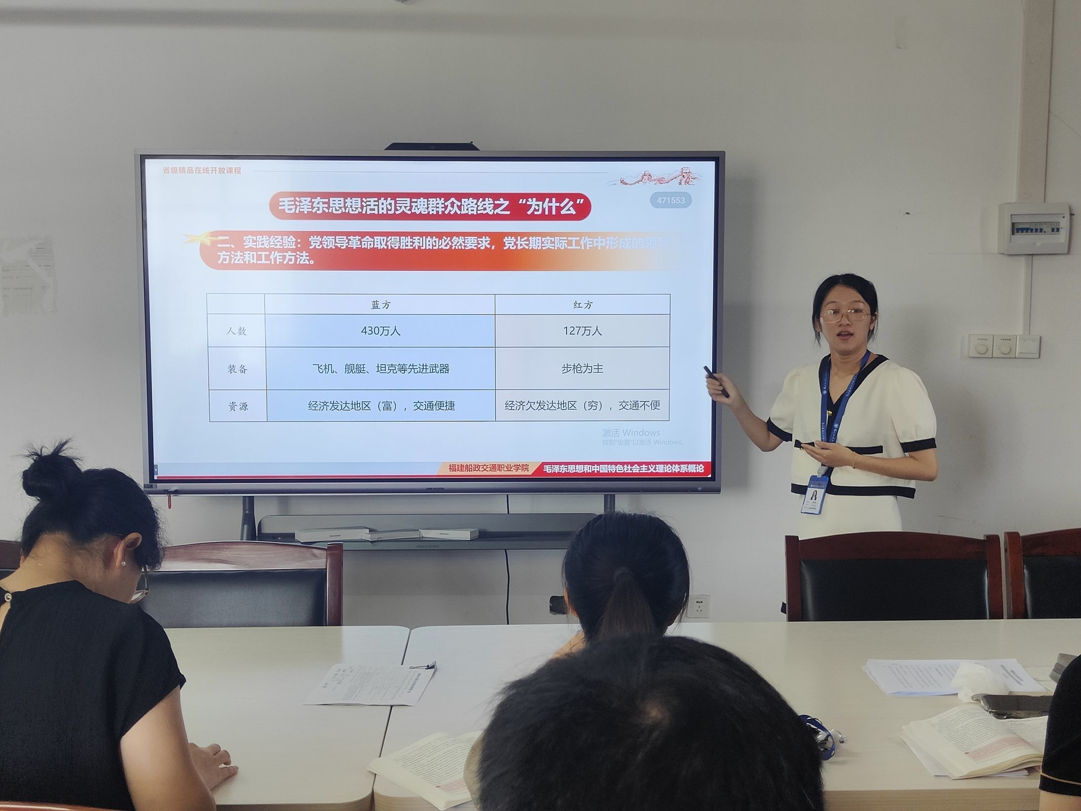 2023年9月12日,馬克思主義學(xué)院“毛澤東思想和中國(guó)特色社會(huì)主義理論體系概論”教研室全體專(zhuān)兼職教師在圖書(shū)館1101會(huì)議室室開(kāi)展 “優(yōu)·美”教學(xué)工作坊教研活動(dòng)。本次教研的內(nèi)容是本課程的《第一章 毛澤東思想及其歷史地位》,由洪凌艷老師擔(dān)任主備課人。