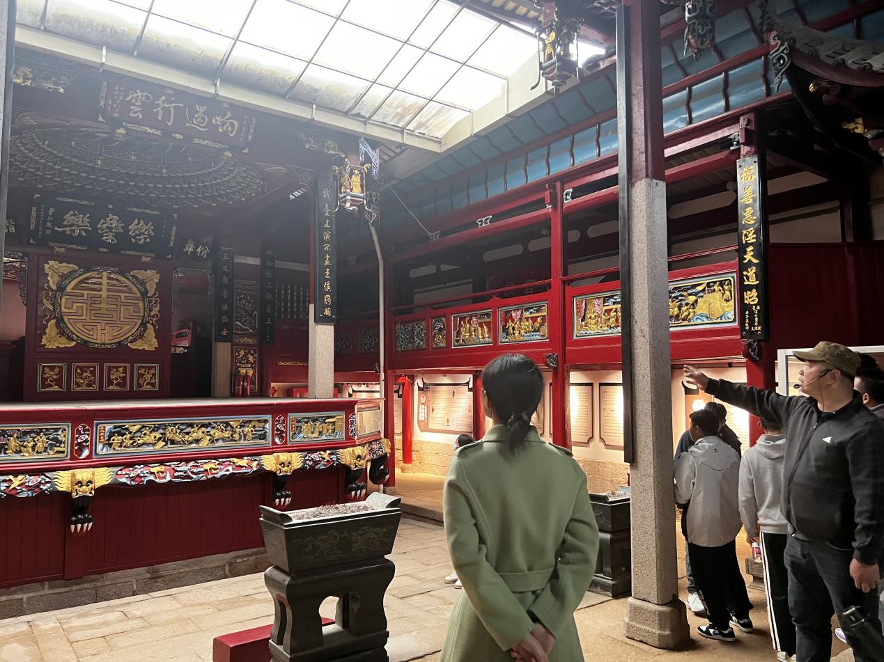 隨后,同學(xué)們來到了侯官村,跟隨侯官村村委會紀(jì)委委員王國峰的介紹,進(jìn)行實(shí)地考察與深入走訪。侯官自漢代建縣以來,以閩越文化為基礎(chǔ),在長期的歷史發(fā)展中不斷融合其他多元文化,保留儒家文化傳統(tǒng)及古代中原文化的精神內(nèi)涵,展現(xiàn)出文藝繁榮、交流活躍,文明進(jìn)步的生動局面?!伴_眼看世界的第一人”林則徐、“中國船政之父”沈葆楨、中國近代“西學(xué)第一人”嚴(yán)復(fù)、“黃花崗七十二烈士”林覺民和方聲洞……一群引領(lǐng)時(shí)代的杰出人物都來自侯官。同學(xué)們在參觀中學(xué)習(xí)歷史知識,在考察中感悟文化偉力,深刻感受到“侯官”早已不僅是一個(gè)地名詞,更是一種精神層面的標(biāo)志性符號。