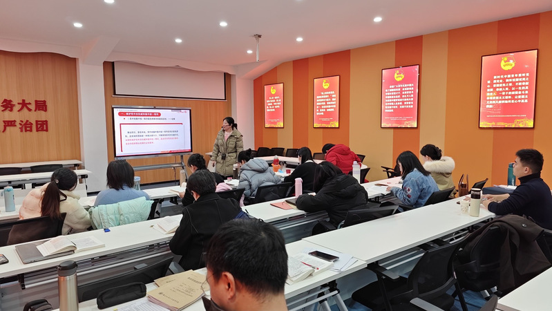 為更好推動習近平新時代中國特色社會主義思想進教材、進課堂、進頭腦,與教學交流,2024年3月1日,馬克思主義學院習近平新時代中國特色社會主義思想概論”教研室舉行了本學期第四次教學工坊活動。本次教研的內容是本課程的“第三章堅持黨的全面領導 ”部分,由江冰老師擔任主講。袁穎婷與藍素瓊老師分別做片段教學。