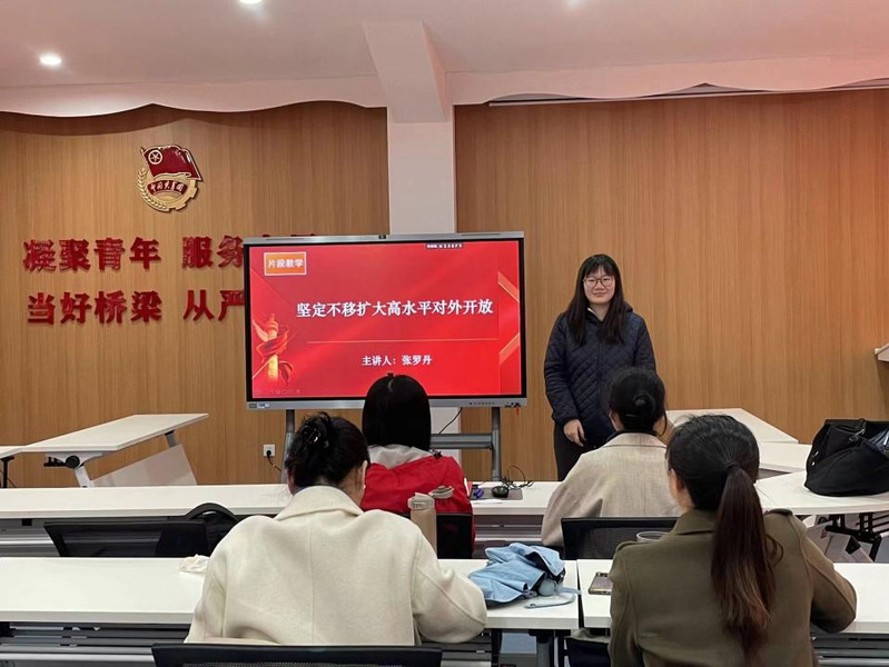 嚴兵與張羅丹老師分別就《堅持全面深化改革開放的正確方向》與《堅定不移擴大高水平對外開放》兩個教學內(nèi)容展開片段教學展示。展示內(nèi)容重難點突出,邏輯清晰,設計鮮明,思路拓展,示范性強,取得了良好的展示效果。