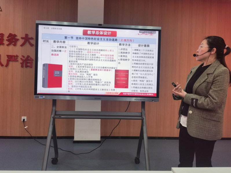 2024年3月29日,馬克思主義學院習近平新時代中國特色社會主義思想概論教研室開展了本學期第十次思政課教師“大練兵”暨“優(yōu)·美”教學工作坊集體備課活動。活動圍繞本課程的第九章“全面依法治國 ”進行教學研討。本次集體備課由劉麗萍老師擔任主講,袁穎婷老師做片段教學展示。