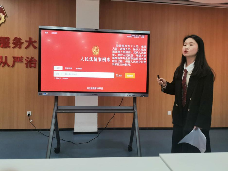 隨后袁穎婷老師就《堅持和拓展中國特色社會主義法治道路的重要原則——以人民為中心》進行了片段教學展示。教學中袁穎婷老師以今年春節(jié)檔熱映電影《第二十條》的原型案件“于歡案”和“福州趙宇案”為例,說明《刑法》第二十條被喚醒,映照的正是我國法治的進步,順應了人民群眾對正義的愿望與要求,體現(xiàn)了中國特色社會主義法治道路應堅持的以人民為中心的原則。由此引出對于“走好中國特色社會主義法治道路為什么需要堅持以人民為中心這一原則”的進一步分析。袁穎婷老師的教學內(nèi)容生動、案例豐富,體現(xiàn)社會熱點,貼近了我國法治建設的實踐,起到了很好的示范作用。