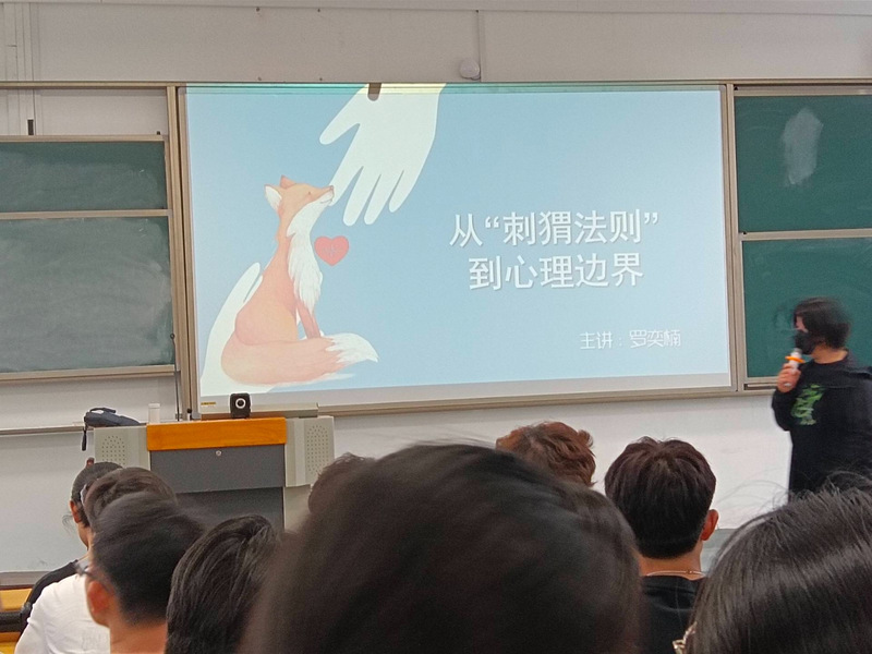 為了促進大學生心理健康,5月15日,學院心理健康活動中心邀請專職心理教師羅奕楠為學生們開展了《從“刺猬法則”到心理邊界》心理健康講座。