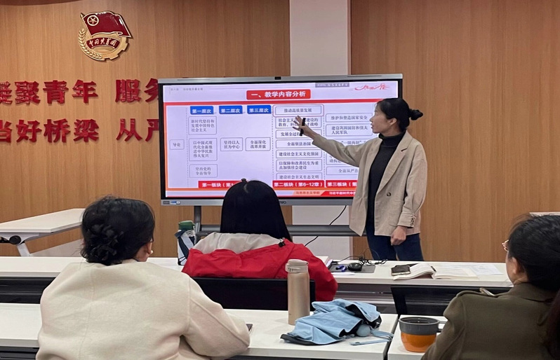 備課活動圍繞《習近平新時代中國特色社會主義思想概論》課程第六章《推動高質(zhì)量發(fā)展》展開。洪凌艷老師擔任教學設計主講,張玉祥老師與袁穎婷老師分別做片段教學。