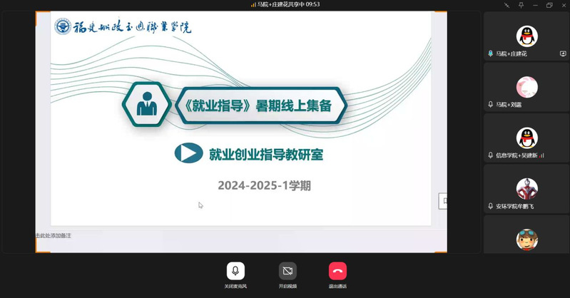 為進一步推進《就業(yè)指導》課程的規(guī)范化和專業(yè)化建設,提升就業(yè)指導課程教學質量,做好畢業(yè)班就業(yè)指導工作,促進畢業(yè)生更加充分更高質量就業(yè)。近日,馬克思主義學院就業(yè)指導教研室開展2024-2025-1學期《就業(yè)指導》暑期課程線上集體備課教研活動。此次活動由教研主任薛靖老師主持,全體專兼職任課教師參加。