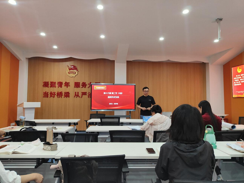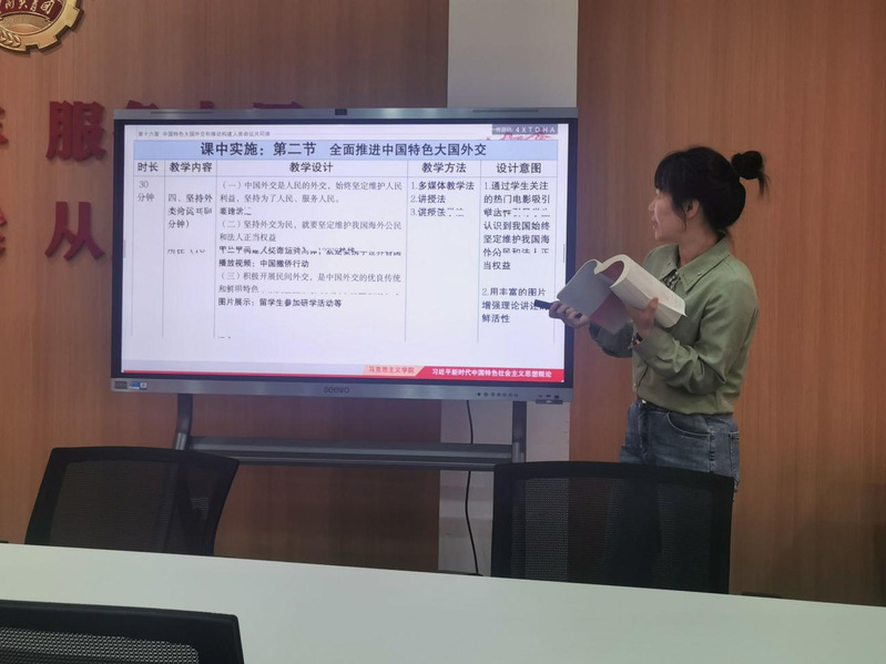 為更好地組織“習(xí)近平新時(shí)代中國特色社會主義思想概論”課程教學(xué),推動(dòng)習(xí)近平新時(shí)代中國特色社會主義思想進(jìn)教材、進(jìn)課堂、進(jìn)頭腦,2024年5月22日,馬克思主義學(xué)院習(xí)近平新時(shí)代中國特色社會主義思想概論教研室開展了本學(xué)期第十七次思政課教師“大練兵”暨“優(yōu)·美”教學(xué)工作坊集體備課活動(dòng)。本次備課活動(dòng)圍繞本課程第十六章“ 中國特色大國外交和推動(dòng)構(gòu)建人類命運(yùn)共同體”進(jìn)行教研活動(dòng)。本次集體備課由范碧華老師擔(dān)任主講,連萬桂老師做片段教學(xué)展示。