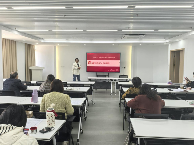 劉老師從教學(xué)目標(biāo)、教學(xué)內(nèi)容、教學(xué)重難點、教學(xué)方法以及教學(xué)設(shè)計對“從教育大國邁向教育強國”這一專題進行了整體分析,結(jié)合案例圍繞建設(shè)教育強國的重大意義、我國建設(shè)教育強國的信心和底氣、如何推進教育強國建設(shè)進行了分享,讓學(xué)生掌握教育與科技、經(jīng)濟、社會共同富裕之間的內(nèi)在聯(lián)系,理解建設(shè)教育強國在全面建成社會主義現(xiàn)代化強國、實現(xiàn)高水平科技自立自強、促進全體人民共同富裕等方面的戰(zhàn)略意義。