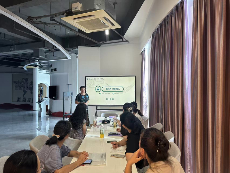 在專題講解環(huán)節(jié),薛靖老師系統(tǒng)梳理了求職必備的能力素養(yǎng)體系。她提出,除夯實的專業(yè)知識功底外,高效溝通能力、團(tuán)隊協(xié)作意識、問題解決能力及創(chuàng)新思維等軟實力,已成為用人單位考察的重點維度。同時,她著重強調(diào)自我認(rèn)知與職業(yè)規(guī)劃的基礎(chǔ)性作用,鼓勵教師在教學(xué)中引導(dǎo)學(xué)生明確職業(yè)定位,以目標(biāo)為導(dǎo)向積淀成長。