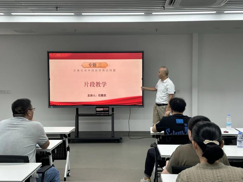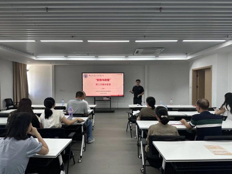2025年9月25日,馬克思主義學院形勢與政策教研室在會議室開展了新學期第三次集體備課活動,聚焦“正確認識中國經濟熱點問題”專題,由連萬桂老師主講,石要武、陳藝老師進行片段教學示范。