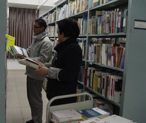 在學院“兩訪兩創(chuàng)”及“三風建設”工作如火如荼開展之際,圖書館積極緊跟學院步伐,館中黨員、年青工作人員發(fā)揮先鋒模范作用,利用每周一、周四兩個晚上、周三下午進行加班加點。帶班老師組織勤工儉學同學及義工對圖書館8樓的密集圖書進行分類整理、上架。密集圖書灰塵大、數(shù)量多,給分類、整理及上架工作帶來不小的挑戰(zhàn),但加班的師生不懼困難,他們分組有序地進行分類、調(diào)撥、打包、上架,干十足勁。