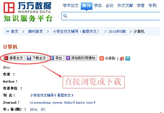 6、如點(diǎn)擊“電子全文”,會(huì)進(jìn)入本館已購(gòu)買的相關(guān)數(shù)據(jù)庫(kù)的文獻(xiàn)詳情頁(yè)面,可以直接瀏覽或下載