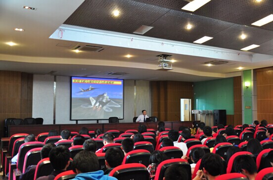 “劍與盾的撞擊,奏響了古代戰(zhàn)爭(zhēng)的主旋律”,陳洪教授以詩(shī)意的語(yǔ)言開(kāi)始當(dāng)天的講座。在一個(gè)半小時(shí)的講座中,陳洪教授結(jié)合一些具體戰(zhàn)例和感人的故事用詼諧易懂的語(yǔ)言向?qū)W生們詳細(xì)闡述了空中系統(tǒng)作戰(zhàn)技術(shù)對(duì)現(xiàn)代空戰(zhàn)的影響。最后,陳洪教授還與同學(xué)們展開(kāi)互動(dòng),回答了同學(xué)們關(guān)心的一些熱點(diǎn)問(wèn)題。