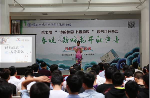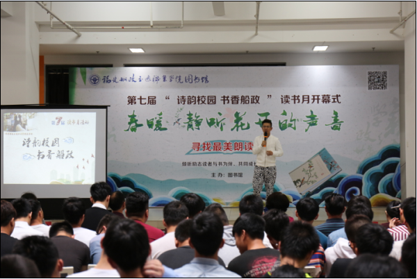 4月26日下午,我院隆重舉行“尋找最美朗讀者”活動決賽暨“詩韻校園 書香船政”圖書館第七屆讀書月系列活動開幕式。學(xué)院陳艷紅副院長、相關(guān)職能部門負(fù)責(zé)人、各系部黨總支書記及優(yōu)秀校友福建電視臺著名主持人陳朱海應(yīng)邀參加了開幕活動。