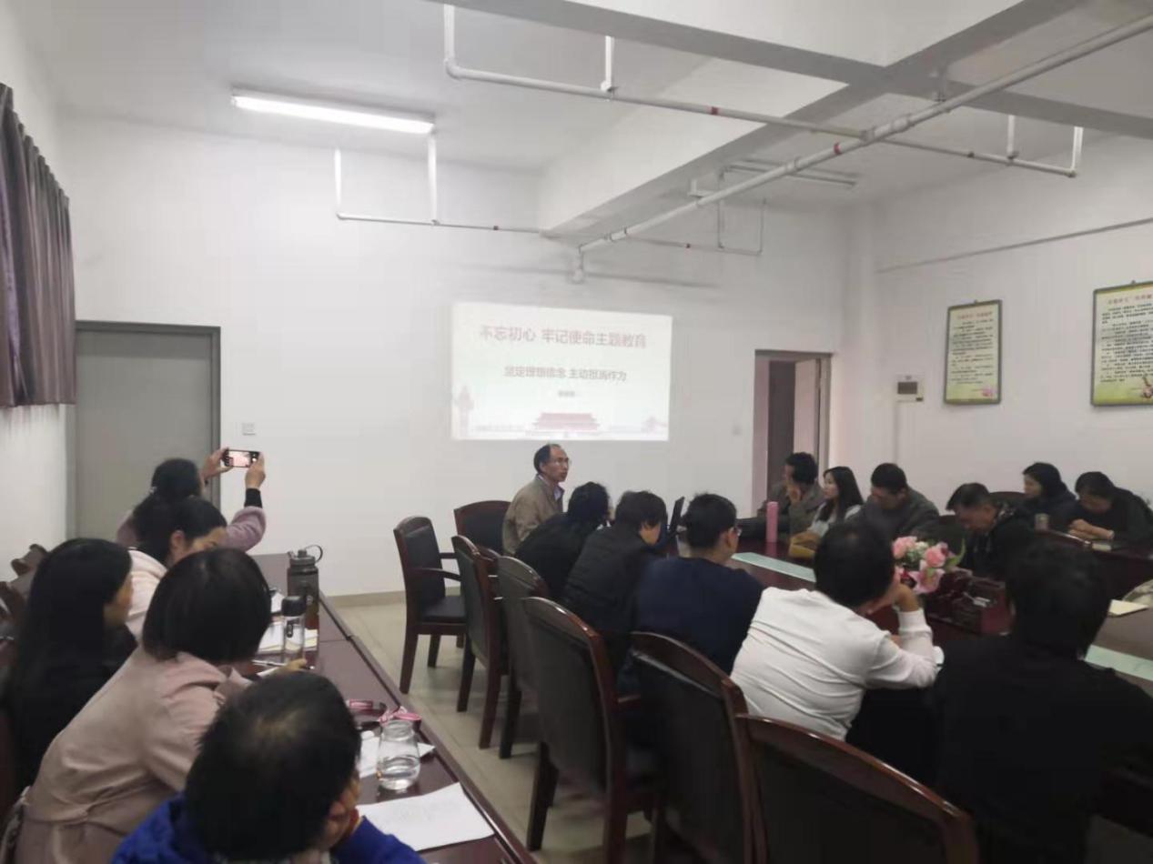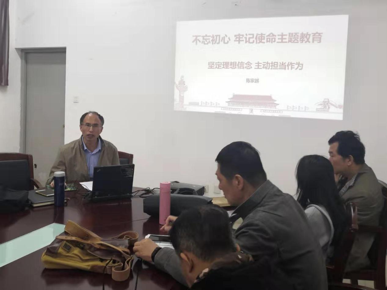 11月21日上午,根據(jù)學(xué)院“不忘初心、牢記使命”主題教育工作安排部署,圖書館館長陳家越在館內(nèi)9樓會議室為全體館員做了“不忘初心,牢記使命”的專題黨課,他圍繞“以堅(jiān)定的理想信念堅(jiān)守初習(xí)心”、“堅(jiān)定理想信念永葆政治本色”、“在知行合一中主動(dòng)擔(dān)當(dāng)作為”等三個(gè)方面進(jìn)行了闡述。家越館長指出,我們要時(shí)刻不忘我們黨來自人民、根植人民,全體館員要深入學(xué)習(xí)習(xí)近平新時(shí)代中國特色社會主義思想,檢視自己的理想信念和思想言行,永葆政治本色,要自覺運(yùn)用當(dāng)代中國馬克思主義去改造客觀世界,在投身實(shí)踐過程中主動(dòng)擔(dān)當(dāng)作為。