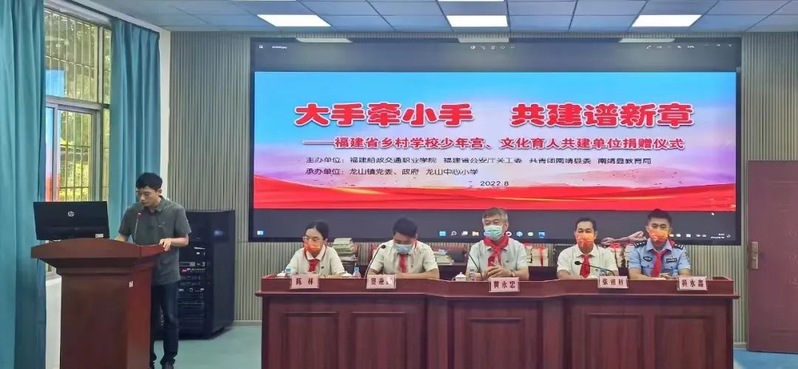 816日上午,我院黨委委員、副校長(zhǎng)張祖柱、省公安廳關(guān)工委常務(wù)副主任、秘書長(zhǎng)黃永忠、省公安廳團(tuán)委負(fù)責(zé)人、圖書館館長(zhǎng)陳林帶領(lǐng)福建船政交通職業(yè)學(xué)院師生和省公安廳民警一行來(lái)到龍山中心小學(xué),舉行“大手牽小手,共建譜新章”——福建省鄉(xiāng)村學(xué)校少年宮、文化育人共建單位捐贈(zèng)儀式。南靖縣委竇秉政副縣長(zhǎng),縣公安局、團(tuán)縣委、教育局、龍山鎮(zhèn)等部門相關(guān)領(lǐng)導(dǎo)參加活動(dòng)。