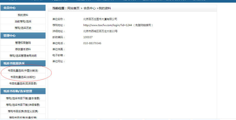 第四步:登錄以后,選書目批量選采(中圖分類)或(出版社)