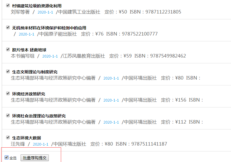 最后一步:全選或者單獨選打鉤,點批量薦購提交即可