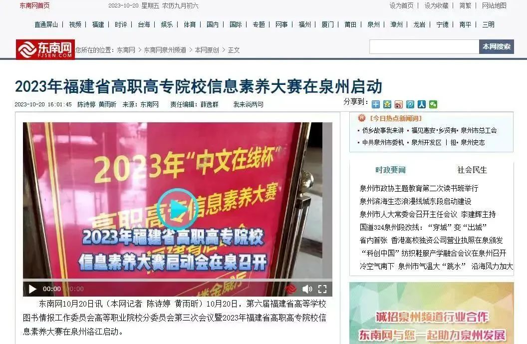 由福建省高校圖工委高等職業(yè)院校分委會主辦,泉州醫(yī)學(xué)高等??茖W(xué)校承辦的2023 年福建省高職高專院校信息素養(yǎng)大賽于11月5日圓滿落幕。