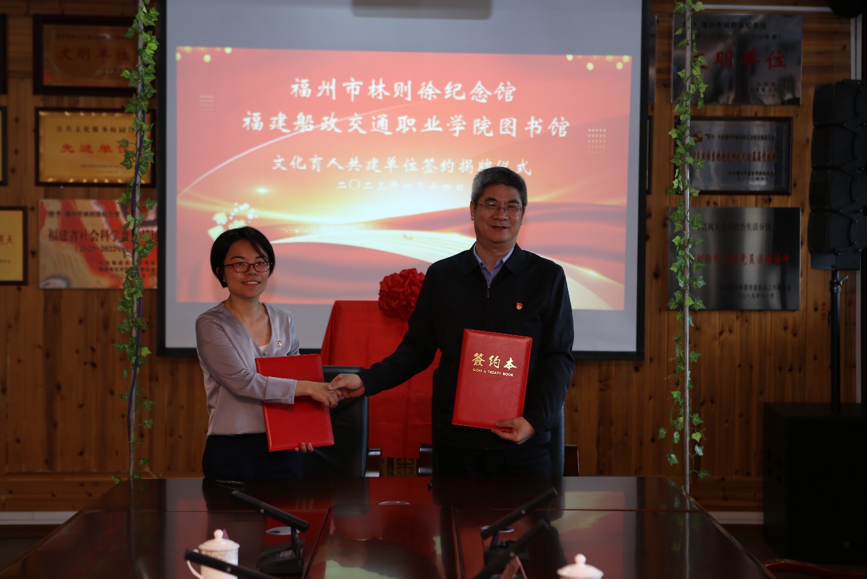 為進(jìn)一步在深學(xué)細(xì)照篤行習(xí)近平新時(shí)代中國特色社會主義思想上下功夫,把學(xué)習(xí)全國兩會精神與學(xué)習(xí)黨的二十大及二十屆一中、二中全會精神相結(jié)合,結(jié)合省委部署實(shí)施“深學(xué)爭優(yōu)、敢為爭先、實(shí)干爭效”行動,我館積極探索館館合作新模式,在進(jìn)一步加強(qiáng)船政文化的傳承與發(fā)揚(yáng)的基礎(chǔ)上,不斷創(chuàng)新文化教育新形式,建立起資源共享、合作共贏的長效機(jī)制。4月14日,我館與福州市林則徐紀(jì)念館簽署共建文化育人單位并舉行揭牌儀式。林則徐紀(jì)念館黨支部書記、館長陳繼勇,黨支部副書記林虹,副館長鐘田田,我館黨支部書記、館長陳林帶隊(duì),圖書館黨支部全體與會人員及入黨積極分子,黨政辦公室黨支部黨員代表共同參加了共建交流活動。