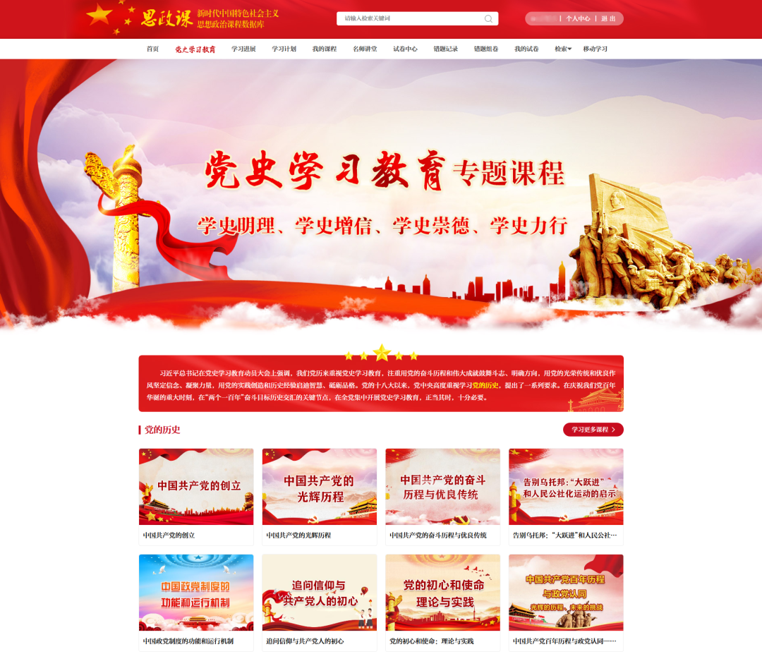 1. 在“思政課”數(shù)據(jù)庫(kù)內(nèi)學(xué)習(xí)“黨史學(xué)習(xí)教育專題課程”并答卷自測(cè)練習(xí),積累“競(jìng)賽積分”。