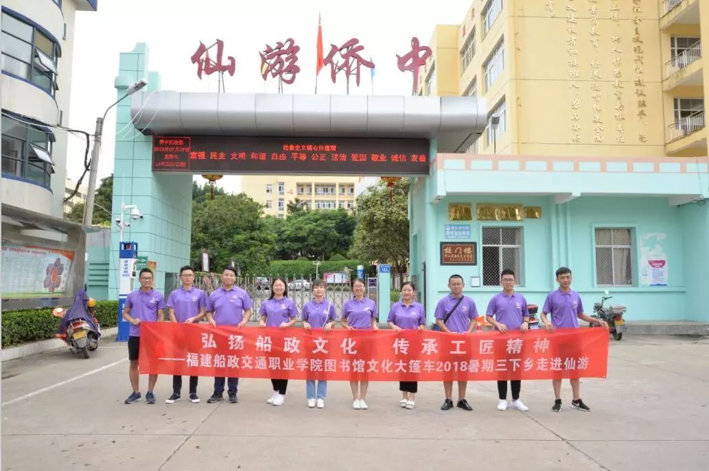 福建船政交通職業(yè)學(xué)院圖書館文化大篷車充分利用圖書館資源優(yōu)勢(shì),以傳承船政文化為己任,弘揚(yáng)船政學(xué)堂的職業(yè)教育理念,精益求精,密益求密,積極開展職業(yè)教育志愿服務(wù)活動(dòng),打造有船政文化特色的校園文化品牌,為廣大市民服務(wù),讓廣大市民知道船政、了解船政、走進(jìn)船政。 2018年7月6日-7月10日,圖書館依托 “文化大篷車”項(xiàng)目,組成教育關(guān)愛服務(wù)團(tuán)“三下鄉(xiāng)”服務(wù)隊(duì),帶著我院師生的愛心,將滿滿的暖意傳遞到仙游縣市民中。