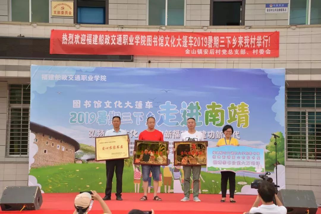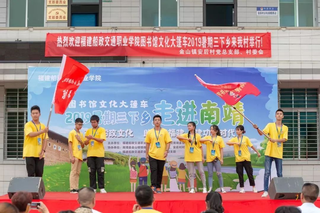 南 福建船政交通職業(yè)學(xué)院圖書館“教育關(guān)愛服務(wù)團(tuán)”2019年暑期“三下鄉(xiāng)”實(shí)踐活動(dòng),在漳州市南靖縣安后村正式拉開了帷幕。南靖團(tuán)縣委、縣圖書館、金山鎮(zhèn)政府領(lǐng)導(dǎo),三下鄉(xiāng)社會(huì)實(shí)踐代表團(tuán)成員及安后村村民近300人在安后村村部共同參與此次三下鄉(xiāng)啟動(dòng)儀式。