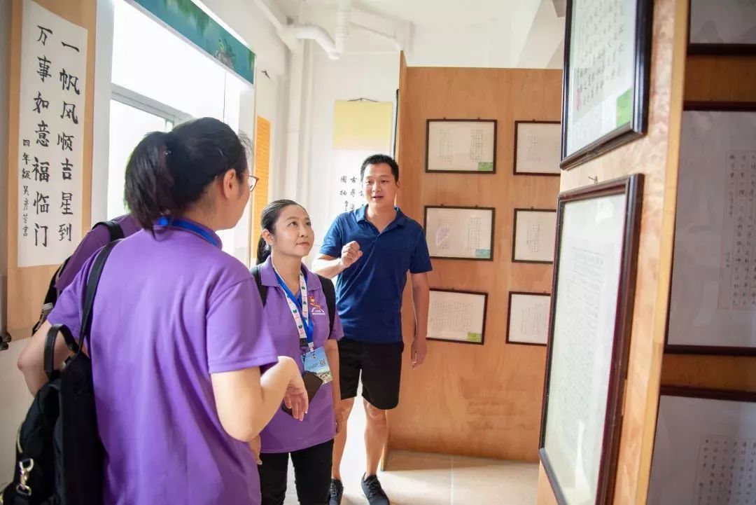 座談會(huì)后,三下鄉(xiāng)團(tuán)隊(duì)在徐老師的帶領(lǐng)下參觀了龍山中心小學(xué)硬筆書法展覽室和足球場(chǎng)。