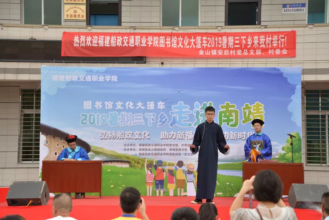 本次暑期三下鄉(xiāng)活動(dòng)依托福建船政交通職業(yè)學(xué)院圖書(shū)館文化大篷車(chē)項(xiàng)目,結(jié)合學(xué)院特色和實(shí)際,充分發(fā)揮圖書(shū)館資源優(yōu)勢(shì),以傳承船政文化為己任,弘揚(yáng)船政學(xué)堂的職業(yè)教育理念,精益求精,密益求密,積極開(kāi)展職業(yè)教育志愿服務(wù)活動(dòng),打造有船政文化特色的校園文化品牌,為廣大市民服務(wù),讓廣大市民知道船政、了解船政、走進(jìn)船政。場(chǎng)外活動(dòng)除了啟動(dòng)儀式的精彩表演外我們還將船政文化帶到現(xiàn)場(chǎng)以小型校史館的形式進(jìn)行展覽在校史講解員的介紹下南靖父老鄉(xiāng)親對(duì)我們船政文化也非常感興趣