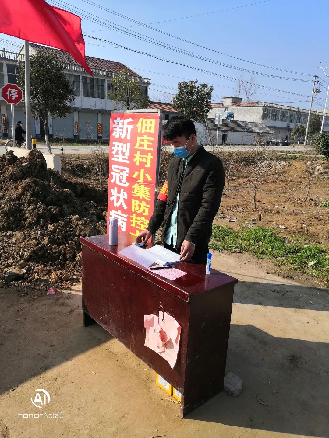 (圖為許耀在村口登記人員信息)