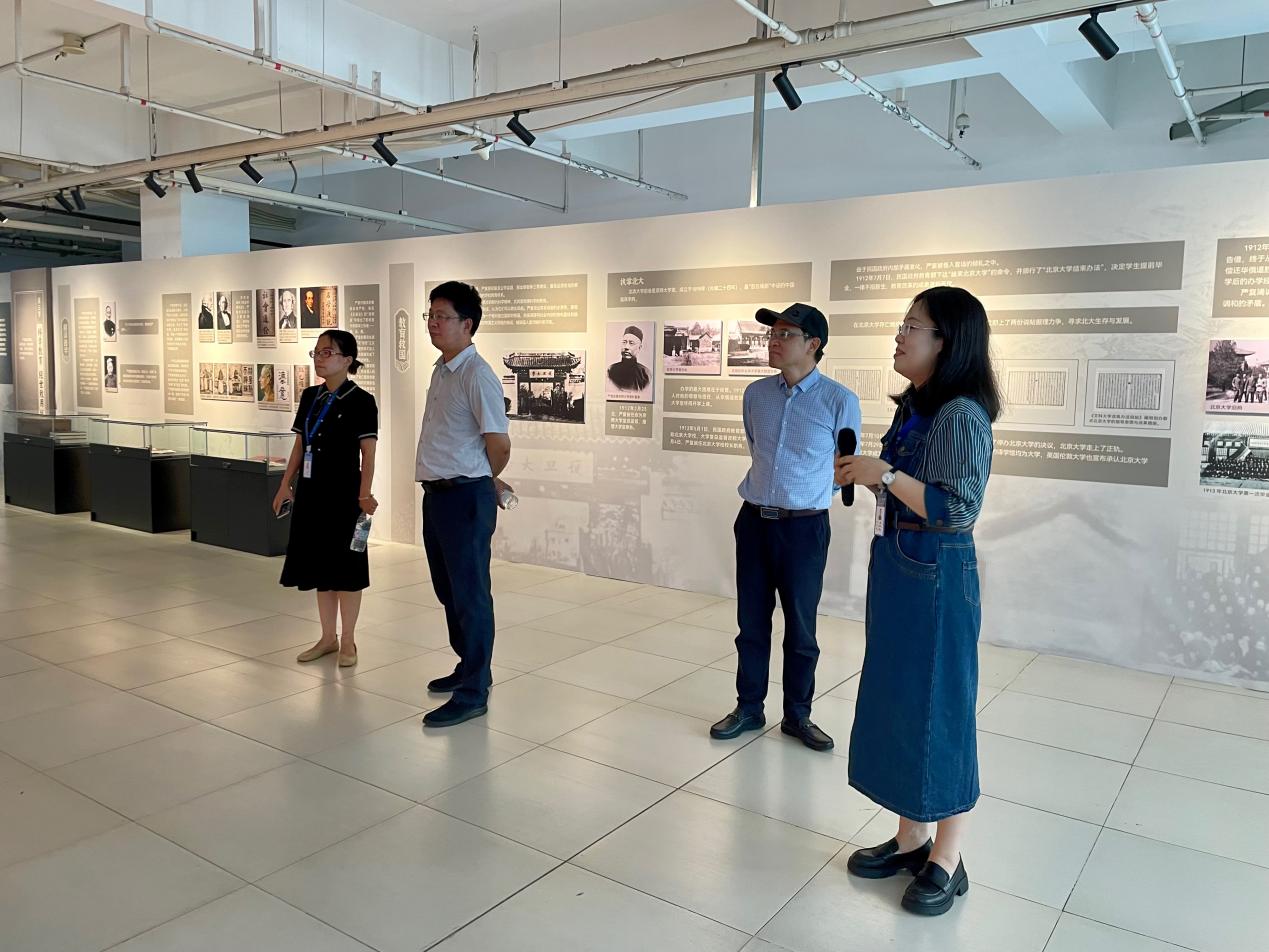 陳林館長(zhǎng)對(duì)兄弟單位同仁的來(lái)訪表示熱烈歡迎,并陪同參觀了圖書館自助借還設(shè)備、書目盤點(diǎn)設(shè)備、閉架書庫(kù)、沈巖藝術(shù)館,現(xiàn)場(chǎng)觀看了嚴(yán)復(fù)史績(jī)展。二位館長(zhǎng)對(duì)我館的書目盤點(diǎn)工作和文化育人工作給予了高度評(píng)價(jià)。