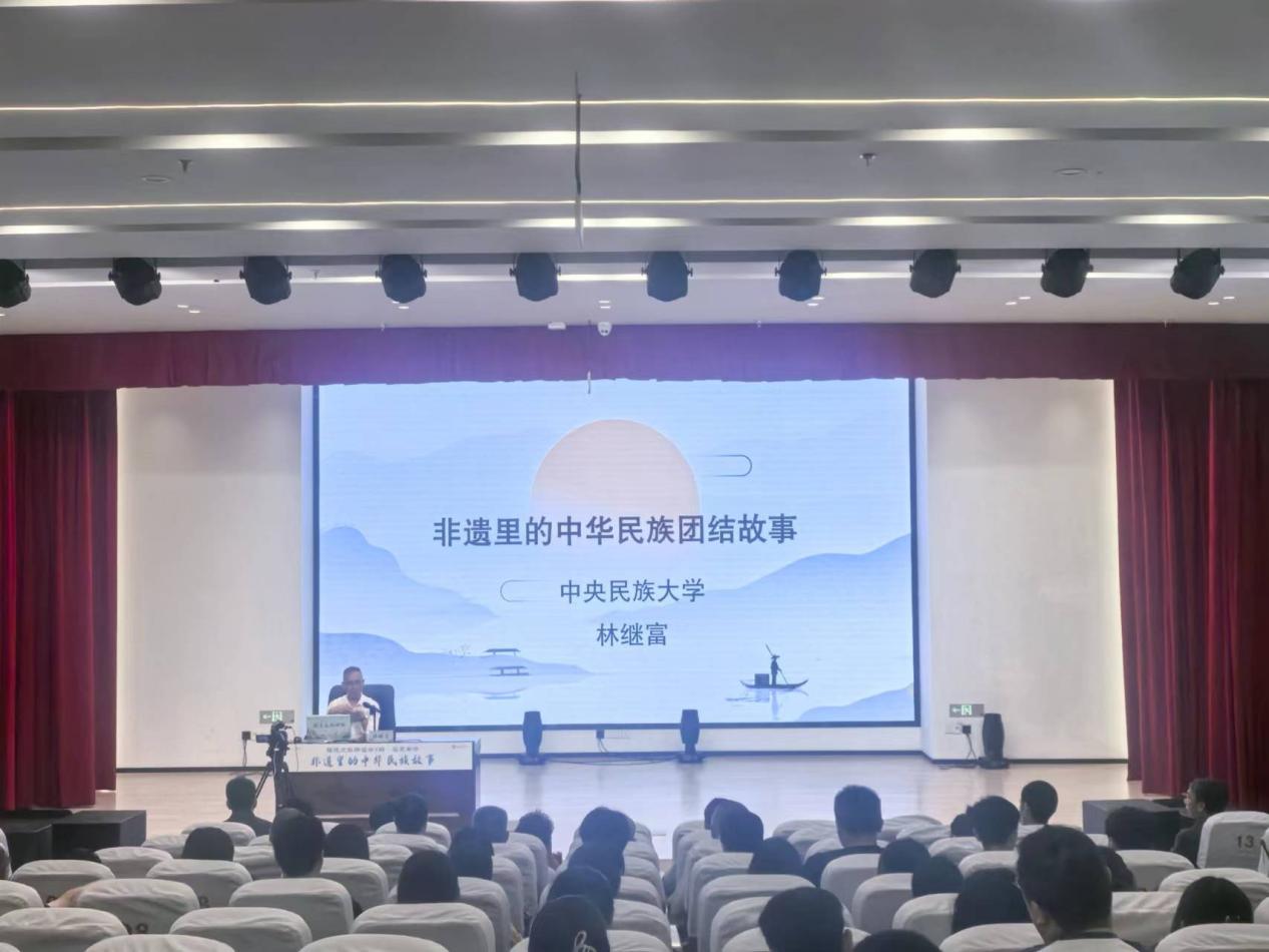 同學(xué)們在志愿服務(wù)的同時,還觀摩了名家專場《非遺里的中華民族故事》的講座,主講人中央民族大學(xué)教授、中國民俗學(xué)會副會長、中國民間文藝家協(xié)會副主席林繼富通過專業(yè)的學(xué)術(shù)知識和豐富的實例展示,從“洪水神話”“英雄史詩”“歷史傳說”三個維度,為大家揭示非遺在促進民族團結(jié)和鑄牢中華民族共同體意識中的重要作用。
