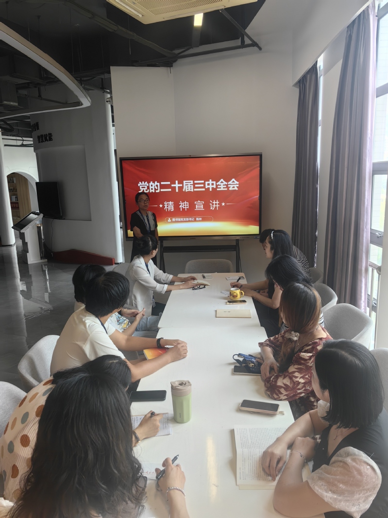 9月12日,學(xué)習(xí)貫徹黨的二十屆三中全會(huì)精神專(zhuān)題宣講會(huì)在圖書(shū)館三樓黨建館舉行,圖書(shū)館黨支部書(shū)記陳林作宣講報(bào)告。圖書(shū)館支部全體黨員參加。