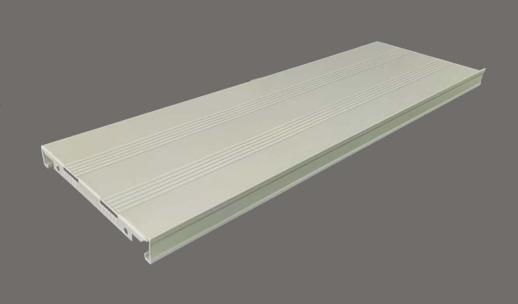 3、擱板:采用δ≥1.0mm優(yōu)質(zhì)冷軋鋼板一體成型,擱板成型厚度一側(cè)≥25mm,側(cè)面壓制兩條≥3mm圓筋,間距離邊≥5mm;擱板另一側(cè)成型高度≥30mm,側(cè)面壓制一條標(biāo)貼梯形槽,梯形槽上部≥20mm,梯形槽下部≥15mm,梯形槽深度≥2mm;擱板正面壓制兩組共10條加強筋,每組5條加強筋,每條筋深≥3mm,形成一個≥28mm的加強區(qū)。一次性滾壓成型,擱板采用自動成型工藝,增大其承載能力,壓筋工藝確保擱板不變形,承重能力強,每層承重80Kg。滿負(fù)載24小時后撓曲度≤2mm,卸載后自動恢復(fù)。