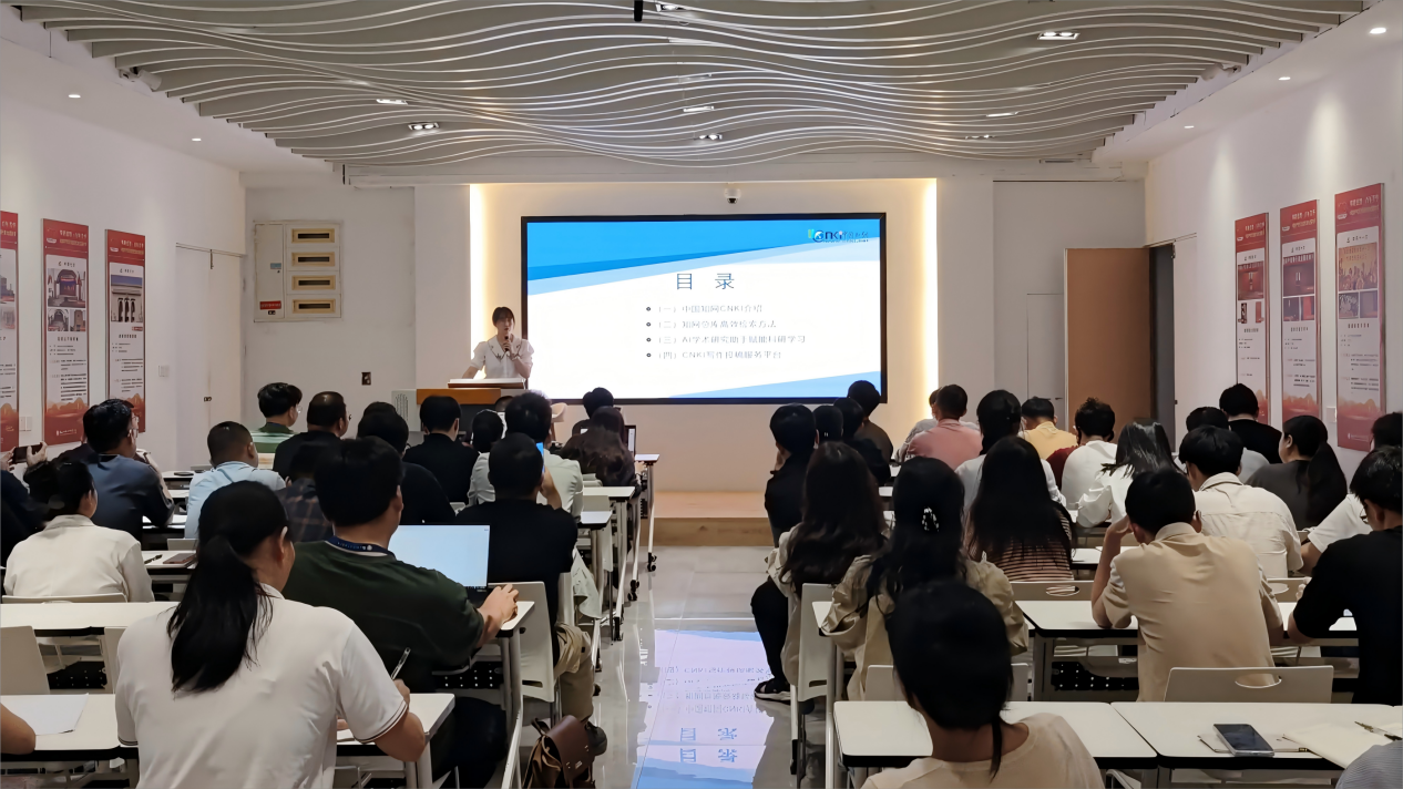 講座伊始,圖書館林元春老師簡(jiǎn)要介紹了如何高效利用圖書館的文獻(xiàn)資源,為教師們推送了便捷的資源利用方法。隨后由中國(guó)知網(wǎng)培訓(xùn)講師檀曦作《知網(wǎng)助力高效科研寫作》專題講座。講師圍繞知網(wǎng)的高效檢索方法、拓展式閱讀的實(shí)用技巧、如何高效完成論文寫作,以及更好的應(yīng)用AI等多個(gè)方面展開深入的介紹和講解,并對(duì)各個(gè)模塊進(jìn)行了現(xiàn)場(chǎng)演示。講座現(xiàn)場(chǎng)互動(dòng)頻繁,反響熱烈。教師們紛紛表示,講座內(nèi)容干貨滿滿,受益匪淺。